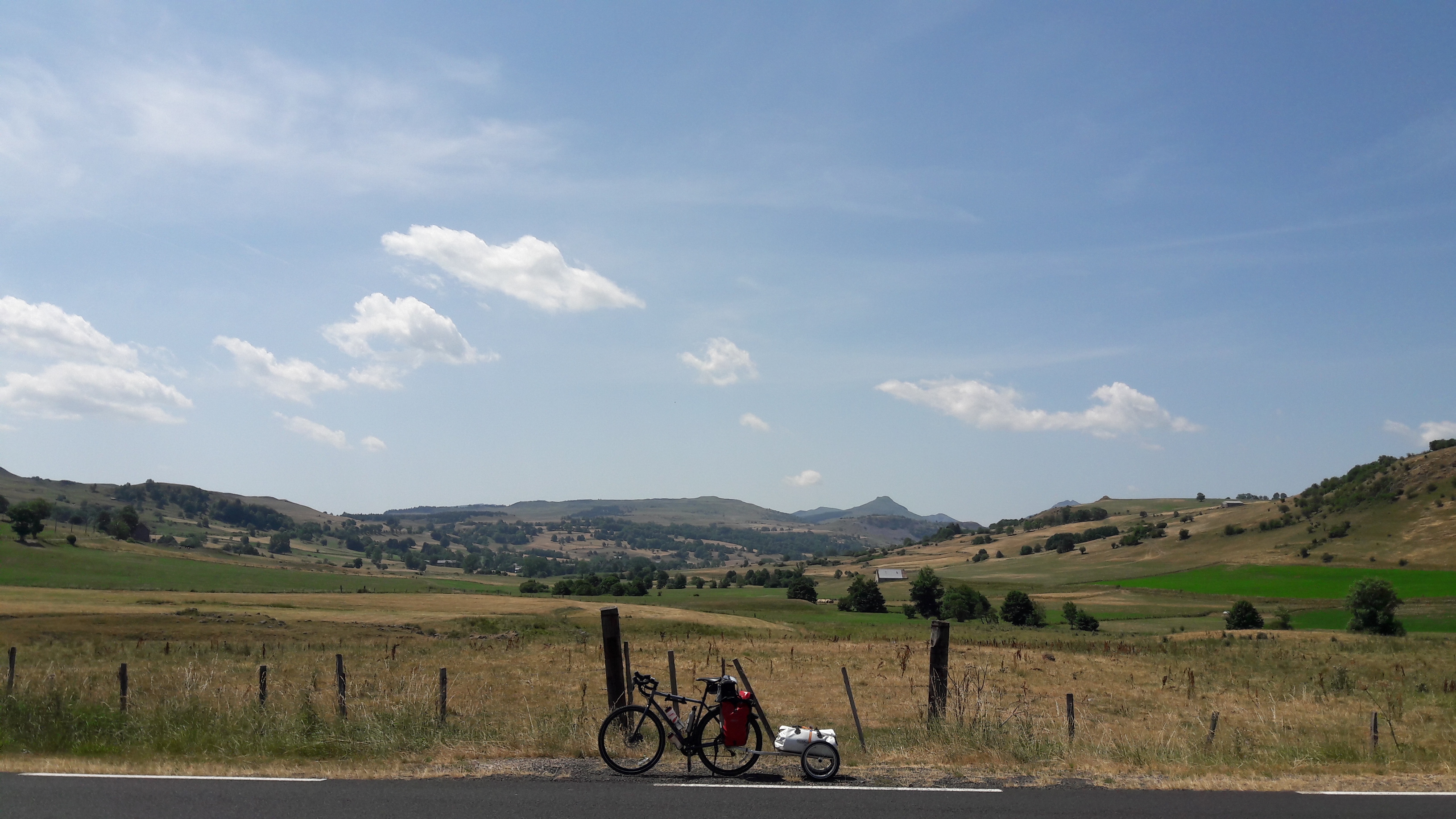 Deuxième paramètre, j’étais attendu à mi-vacances vers Clermont-Ferrand puis en Corrèze, ce qui explique ce « 8 » difforme. Ce parcours un peu bizarre a permis de varier réellement la topologie : plutôt plat sur la première boucle, plutôt pas du tout plat sur la deuxième. En plus, la canicule s’est invitée sur la partie Corrère-Cantal donc on peut dire que c’était au bon moment.