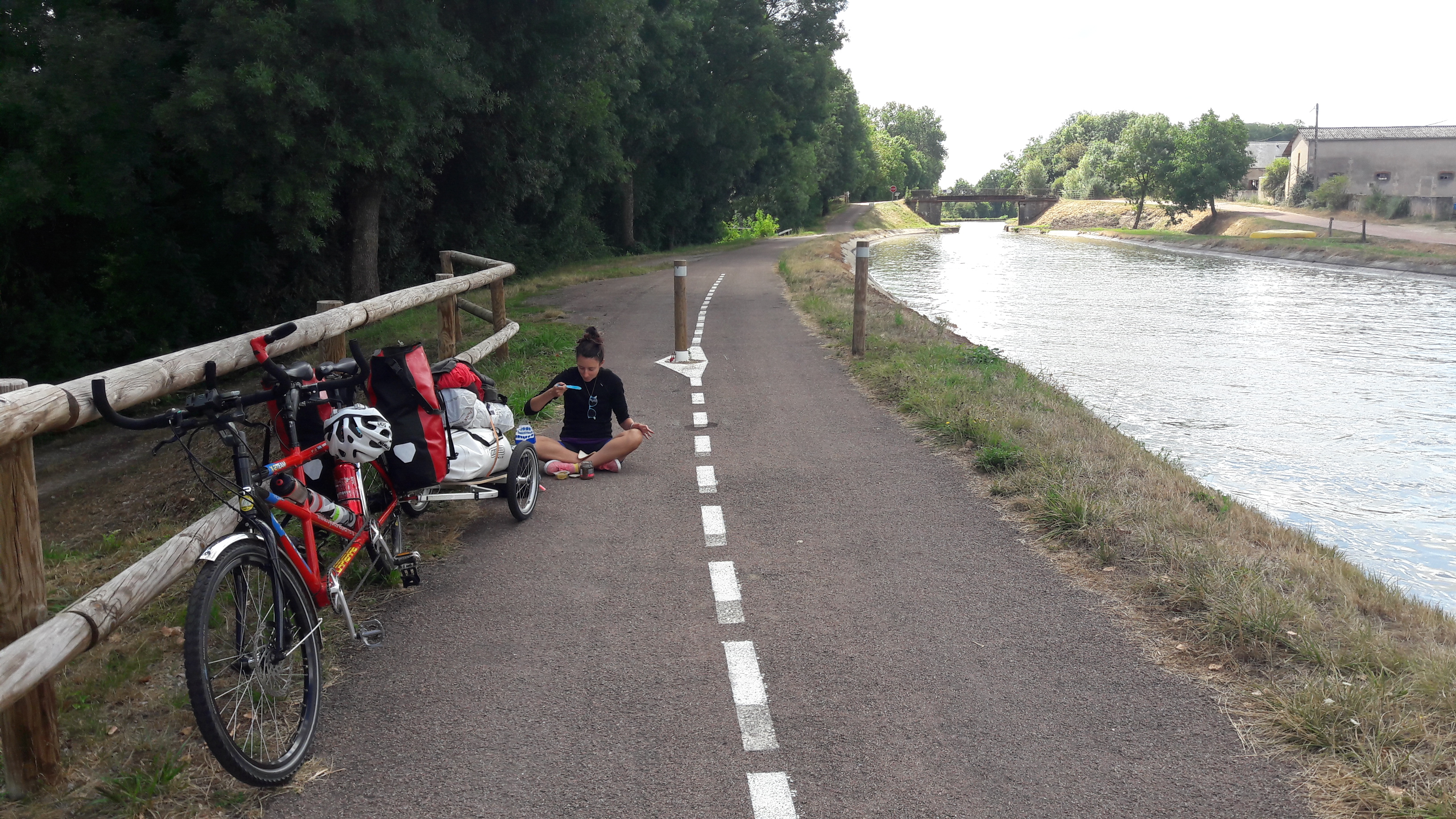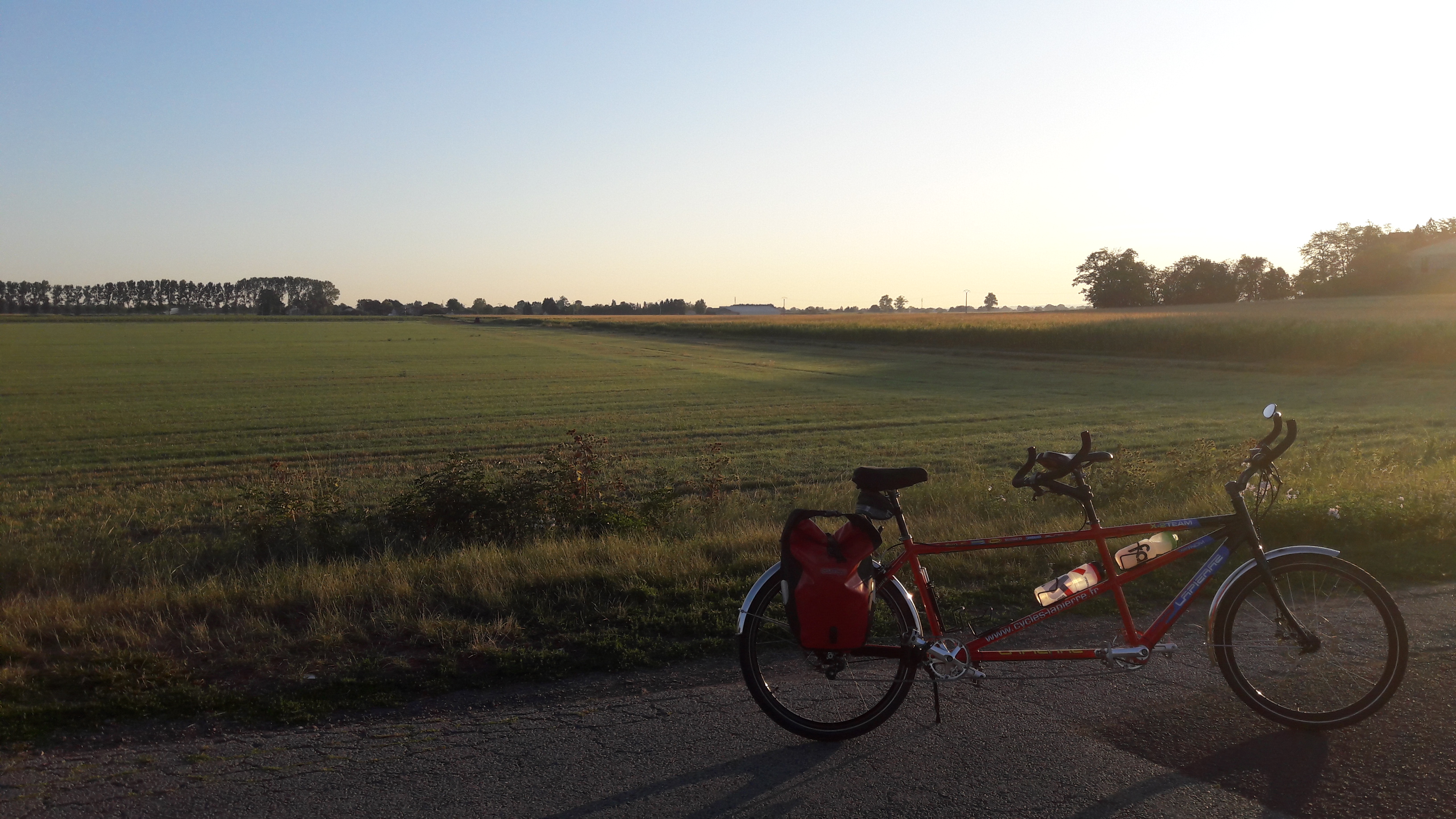 Le premier concerne le transport : il est compliqué de transporter un tandem, que ce soit en train ou en voiture. Pour info, les tandem sont en théorie interdits dans les trains, nous avons d’ailleurs déjà eu de fâcheuses mésaventures… Donc, à moins d’avoir une camionnette spacieuse ou d’avoir construit sa remorque sur-mesure (il n’existe que très très peu de modèles de porte-tandem), il sera délicat d’amener son tandem quelque part. J’ai dit délicat, pas impossible : on peut toujours trouver un plan B comme prendre des trains régionaux aux heures de faibles affluences (et faire comme si de rien n’était, surtout ne pas attirer l’attention hihi!) ou se faire prêter une camionnette. Mais si on vivait cette contrainte comme une opportunité? Voyager à partir de chez soit, visiter et découvrir sa région lentement, n’est-ce pas une formidable occasion de profiter des vacances?